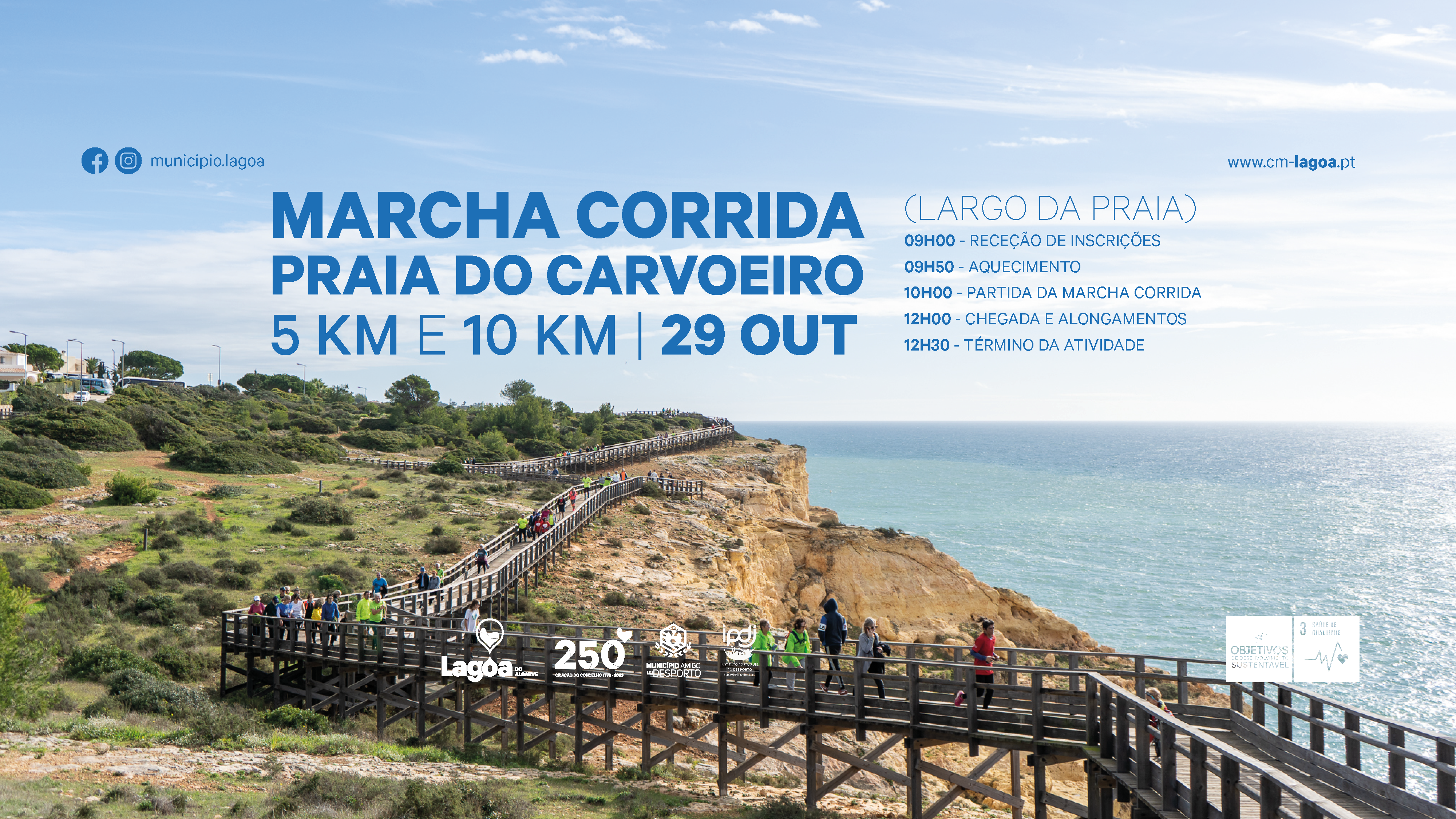 No próximo dia 29 de outubro (domingo), pelas 10h00, tem início a “Marcha Corrida Praia do Carvoeiro”, com partida do Largo da Praia, numa parceria do Município de Lagoa e do IPDJ. As inscrições, no local, começam pelas 09h00.